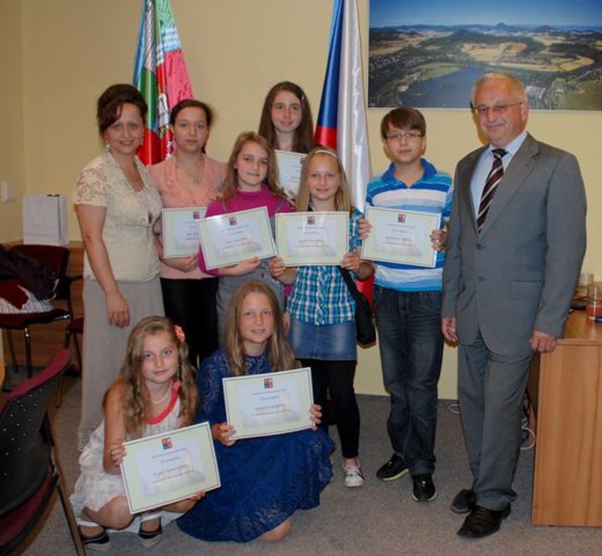Junge Künstler unseres Kreises wurden Ende Juni in den Sitzungssaal des Aussiger Kreises eingeladen. Es waren dort für sie Auszeichnungen für ihre Teilnahmen an nationalen und internationalen Wettbewerben vorbereitet. Alle Eingeladenen gewannen in ihren Tätigkeitsbereichen 1. bis 3. Preise. Von der Vereinigung der talentierten Schüler GIOVANI VIRTUOSI MUSICALI waren Roman Frič, Klára Šponarová, Eva Strejcová, Renata Fričová, Simona Losová, Kristýna Losová und Eliška Scheuflerová dabei und wir gratulieren ihnen!